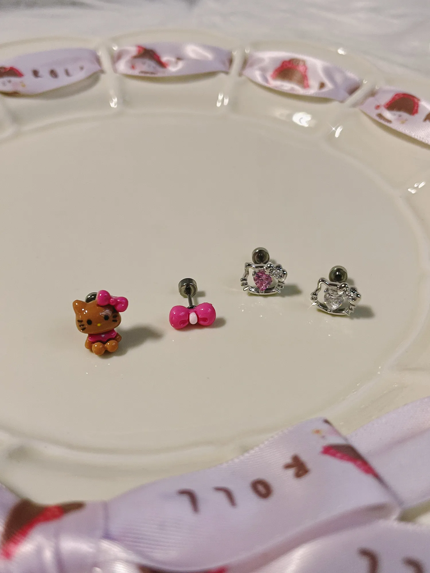 ·材質:頭部飾品銅(外鍍厚金)/耳針跟轉珠頭是316L醫療鋼/鋯石/塑料/珍珠 ·尺寸:整隻黑黑kk寬約1cm高約1cm/桃色蝴蝶結寬約0.9cm高約0.5cm/kk頭(白色鋯石)寬約0.9cm高約0.7cm/kk頭(粉色鋯石)寬約0.9cm高約0.7cm/針長0.6cm(不含轉珠頭)/耳針粗約0.8mm/扁圓型轉珠頭0.4cm/圓球轉珠頭0.3cm/0.4cm ·1入販售